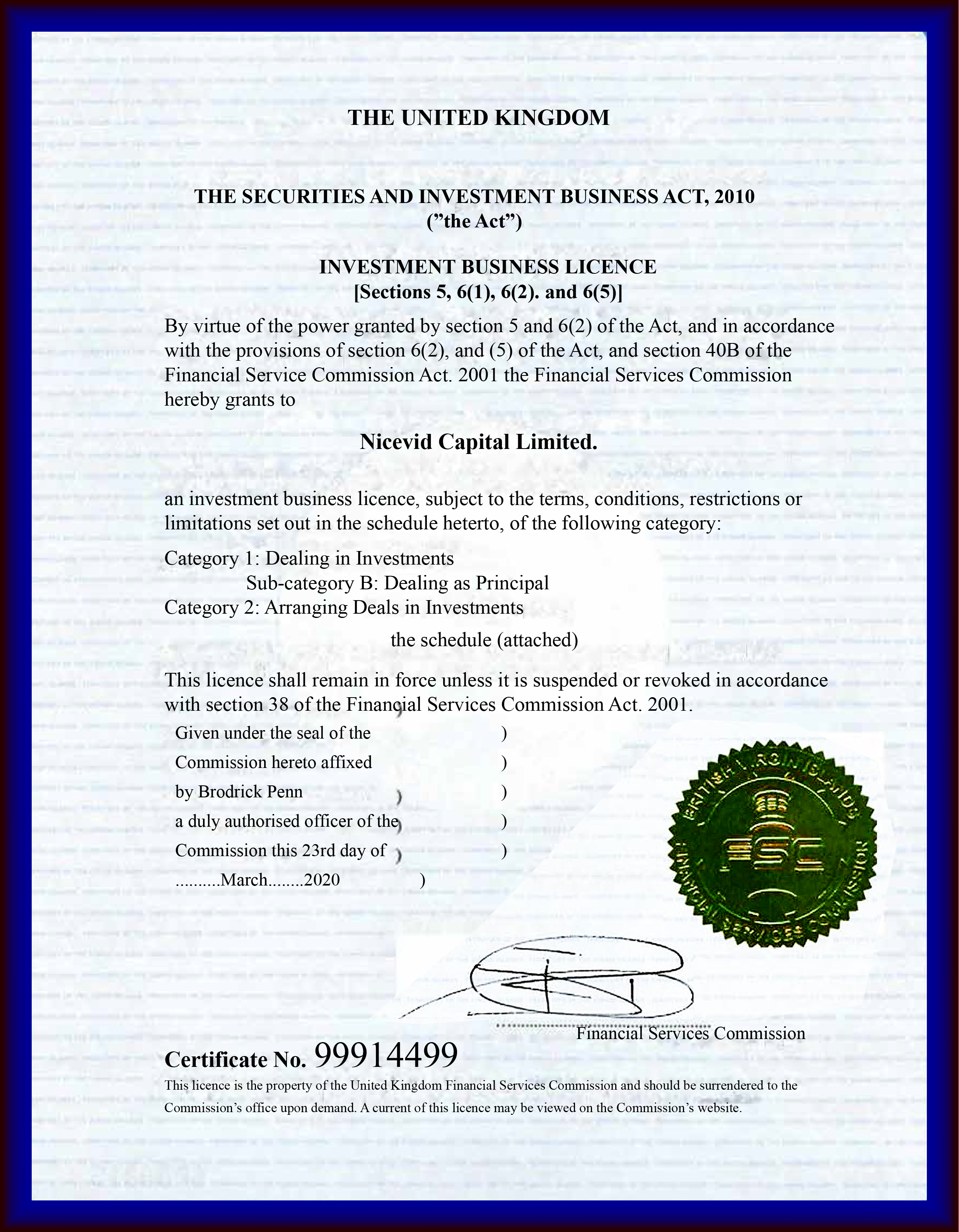 we are certified and licensed to operate a secure investment platfrm across the globe.